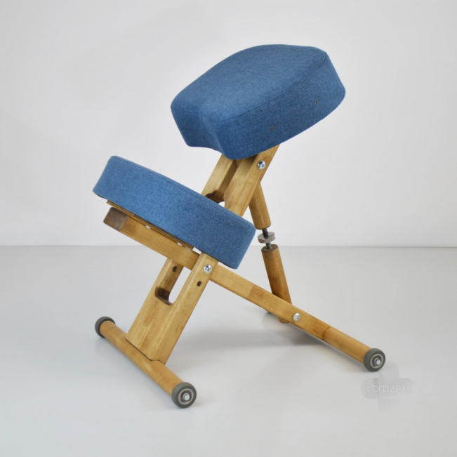 Стул коленный "ОЛИМП ЭКО" на деревянной основе без спинки цвет ткани синий джинс
